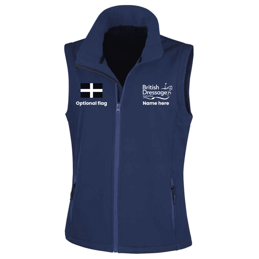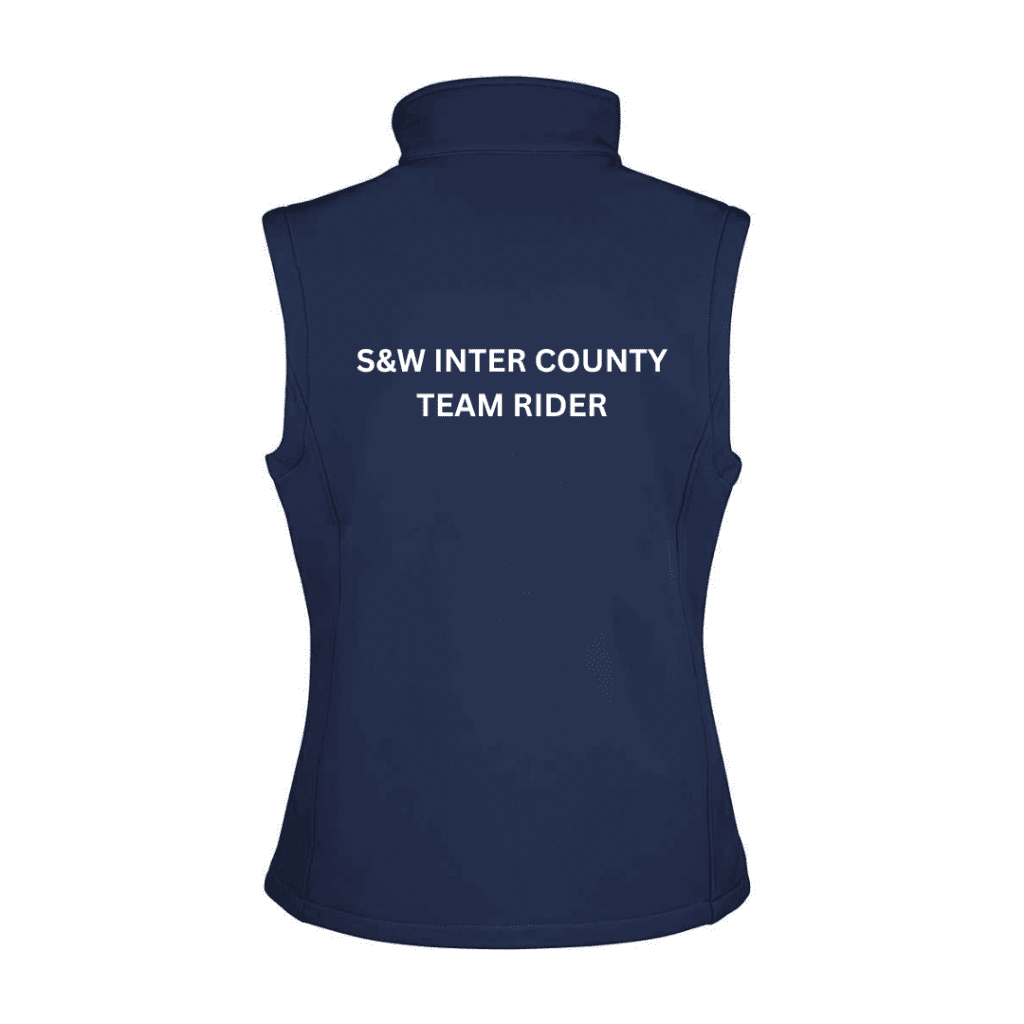 Ladies’ semi-fitted shell gilet featuring your name and the S&W regional logo embroidered to the front, along with S&W County Team Rider print to the back as standard—option to add your county flag to the front by selecting the additional extras tick box (please specify your county)