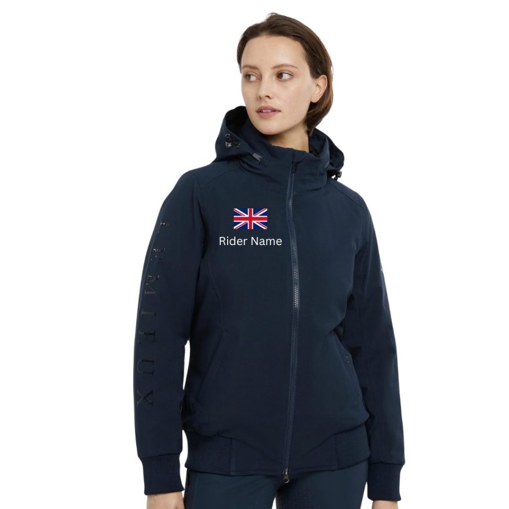 Riders also have the option to add their name embroidered beneath the GB flag on the front, creating a personalised team jacket ideal for international competition, training camps, and travel. These jackets are made to order and not eligible for return.