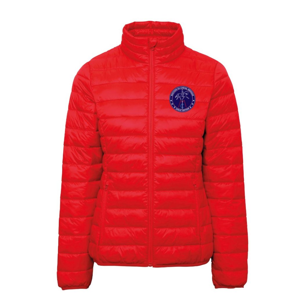 Semi-fitted, breathable padded jacket for women. Available in red (riders) and navy (owners/supporters). Features embroidered MCI GB club logo as standard. Personalise with a one-line name embroidery.